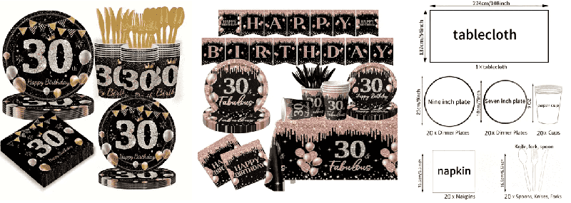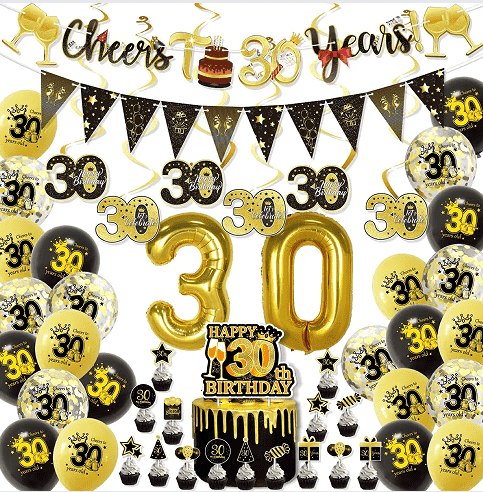 Τα προϊόντα με μπαλόνια 30ων γενεθλίων είναι διακοσμητικά αντικείμενα ειδικά σχεδιασμένα για τον εορτασμό των 30ων γενεθλίων, συμπεριλαμβανομένωνμπαλόνια λατέξσε διάφορα σχήματα και χρώματα,μπαλόνια από αλουμινόχαρτο, καιπροσαρμοσμένα τυπωμένα μπαλόνιατυπωμένα με αριθμούς, ευχές γενεθλίων ή εξατομικευμένα μοτίβα. Είναι κατασκευασμένα από υλικά λατέξ ή αλουμινόχαρτο και μπορούν να φουσκώσουν με ήλιο ή αέρα.Αξεσουάρ για μπαλόνιαπεριλαμβάνουν προϊόντα όπως χάρτινα πανό γενεθλίων, χάρτινες ράβδους γενεθλίων, κρεμαστά δαχτυλίδια από χαρτί, πανιά φόντου, τραπεζομάντιλα και επιτραπέζια σκεύη για πάρτι μιας χρήσης. Προσφέρουμε επίσης προσαρμοσμένα σετ μπαλονιών για τα 30ά γενέθλια, εξατομικευμένα διακοσμητικά πάρτι που αποτελούνται από μπαλόνια και αξεσουάρ μπαλονιών, παρέχοντας περισσότερες δυνατότητες για διακόσμηση πάρτι. Όπως για οικογενειακά πάρτι γενεθλίων, συγκεντρώσεις φίλων, γιορτές γραφείου, διακόσμηση εστιατορίου ή χώρων εκδηλώσεων κ.λπ., για να δημιουργήσετε μια χαρούμενη και ζεστή ατμόσφαιρα και μπορεί επίσης να χρησιμοποιηθεί ως φόντο για λήψη φωτογραφιών ή ως διακοσμητικό για δώρα.