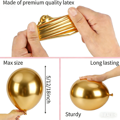 Είναι κατασκευασμένα από την υψηλή ποιότητα100% φυσικό λατέξπου εισάγεται από τη νοτιοανατολική Ασία. Έτσι είναι εντελώς φιλικά προς το περιβάλλον και μη επιβλαβή για τα παιδιά. Διατίθεται σε διάφορα χρώματα, όπως χρυσό χρωμίου, ροζ χρυσό, ασημί σαμπάνιας, κόκκινο, ροζ και ούτω καθεξής, ώστε να μπορούν πάντα να ταιριάζουν με κάθε θέμα και στυλ. ΟΜπαλόνι μεταλλικό λάτεξ 5 ιντσώνμπορεί να χρησιμοποιηθεί μόνο του ή ως μέρος κιτ μπαλονιού. Όπως μεταλλικό σετ μπαλονιών 5 ιντσών ή διακόσμηση γενεθλίων με μεταλλικό μπαλόνι 5 ιντσών. Όλα θα είναι πολύ καλή επιλογή για διακόσμηση και γιορτή.