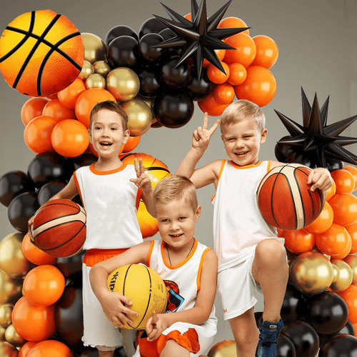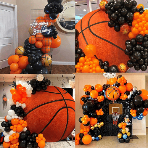 Το κιτ γιρλάντα με μπαλόνι μπάσκετ συμβολίζει το αθλητικό πνεύμα. Έρχεται με πολλά μπαλόνια λάτεξ και πολλά μπαλόνια αλουμινόχαρτου. Όπως και για το θέμα του μπάσκετ, τα χρώματα αυτού του σετ είναι κυρίως πορτοκαλί και μαύρο, και για να κάνετε διαφορετικά στρώματα τομεταλλικά χρυσά μπαλόνια λατέξπροστίθενται επίσης. Το συνολικό στυλ του είναι πολύ ελκυστικό, μπορεί να βελτιώσει αμέσως την ατμόσφαιρα του πάρτι σας.