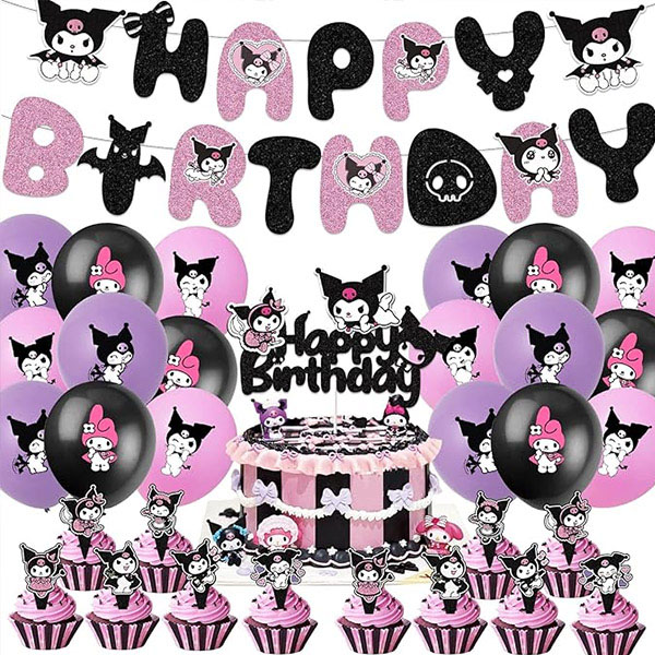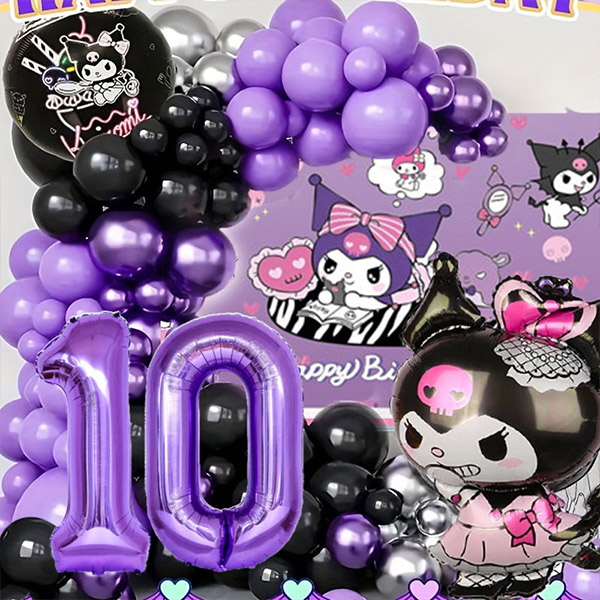 Το Kuromi είναι ένας χαρακτήρας κινουμένων σχεδίων που βασίζεται σε ένα κουνέλι, φορώντας ένα μαύρο μαντίλα και ένα ροζ λογότυπο κρανίου στο μέτωπο. Αγαπά τα παιδιά σε όλο τον κόσμο. Αυτό το κιτ μπαλονιών Kuromi Foil χρησιμοποιεί μαύρο, μοβ και ροζ για να ταιριάζει, το οποίο δημιούργησε μια μυστηριώδη και υπέροχη ατμόσφαιρα με τα κλασικά χρώματα του Kuromi. Το κιτ περιέχει μπαλόνια με διάφορα σχήματα, όπως το μπαλόνι με μεγάλη κεφαλή του Kuromi, το μπαλόνι Foil Foil των 18 ιντσών και το μπαλόνι με στρογγυλό αλουμινόχαρτο 18 ιντσών τυπωμένο με μοτίβο Kuromi. Αυτό το σύνολο πακέτων είναι μικρό και εξαιρετικό, κατάλληλο για πάρτι γενεθλίων μικρών παιδιών, πάρτι γενεθλίων Kulomi, όχι μόνο εξαιρετικά οπτικά εφέ, αλλά έχει επίσης καλή ευελιξία και ανθεκτικότητα, δεν είναι εύκολο να βλάψει.