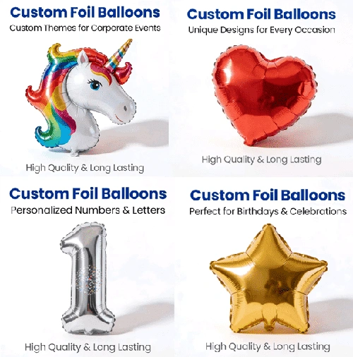 2. Ακρίβεια και δημιουργικά πλεονεκτήματα της προσαρμογής.Τα προσαρμοσμένα μπαλόνια με φύλλο αλουμινίου μπορούν να πραγματοποιήσουν εξατομικευμένο σχέδιο πλήρους μεγέθους και πλήρους σχεδίου, που κυμαίνονται από μίνι σχήματα λίγων εκατοστών έως γιγάντια μπαλόνια πολλών μέτρων, τα οποία μπορούν να προσαρμοστούν σύμφωνα με τις απαιτήσεις.Μπαλόνια από αλουμινόχαρτο κατά παραγγελίαόπως το LOGO της μάρκας, η εικόνα προϊόντος, το σλόγκαν δραστηριότητας, οι προσωπικές φωτογραφίες, τα ονόματα ζευγαριών και οι ημερομηνίες επετείου μπορούν να αποκατασταθούν με υψηλή ακρίβεια. Τα προσαρμοσμένα μπαλόνια αλουμινίου μπορούν επίσης να επιτύχουν αποκλειστική ανάπτυξη μοντελοποίησης, όπως μασκότ μάρκας, κτίρια ορόσημα σε μοντελοποίηση μπαλονιών κ.λπ., είναι δύσκολο να αντικατασταθούν άλλα διακοσμητικά προϊόντα.