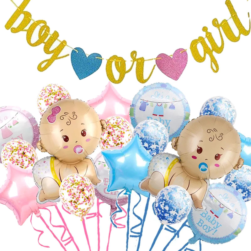 2. Πωλήσεις μικρών πακέτων:Το φύλο αποκαλύπτει το πακέτο μπαλονιών με θέμα. Παράγουμε επίσης πακέτα μπαλονιών που ταιριάζουν για το φύλο αποκαλύπτουν μπαλόνια αλουμινίου. Αυτό το πακέτο περιλαμβάνει συνήθως ένα μπαλόνι αλουμινίου γελοιογραφίας για αγόρια ή κορίτσια, μπαλόνια στρογγυλού αλουμινίου 18 ιντσών, μπαλόνια με φύλλα αστέρων 18 ιντσών και μπαλόνια λατέξ 12 ιντσών. Το πακέτο μας μπορεί να προσαρμοστεί σύμφωνα με τις απαιτήσεις του πελάτη για την κάλυψη των αναγκών κάθε πελάτη. Αυτό το πακέτο είναι ιδανικό για όλες τις περιπτώσεις, είτε πρόκειται για πάρτι βάπτισης μωρών είτε για ένα πάρτι αποκάλυψης σεξ, μπορεί να προσθέσει διασκέδαση σε ένα πάρτι που γιορτάζει ένα νεογέννητο.