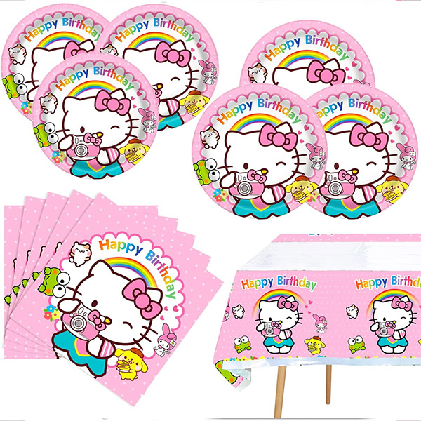 3) Επιτραπέζια σκεύη: Τα επιτραπέζια σκεύη Hello Kitty μπορούν ακόμα να συνδυαστούν με τα μοναδικά σχέδια των ροζ και λευκών ειδών για πάρτι για να δημιουργήσουν μια χαριτωμένη ατμόσφαιρα για το πάρτι σας. Όλα τα προϊόντα είναι πολύ ανθεκτικά, με έντονα χρώματα και έχουν αίσθηση υψηλής ποιότητας.