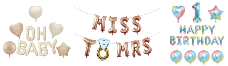 Το μπαλόνι με το αλουμινόχαρτο ταιριάζει με άλλα σχήματα αγάπης, αστεριών, κινούμενων σχεδίων και λογότυπων με μπαλόνια αλουμινίου, τα οποία μπορούν να διατηρήσουν μια ενοποιημένη υφή και να αποφύγουν το μείγμα και την ακαταστασία του υλικού. Ταυτόχρονα, το θέμα ενισχύεται μέσω της μοντελοποίησης επιστολών, η οποία είναι κατάλληλη για πάρτι γενεθλίων και επιχειρηματικές δραστηριότητες.