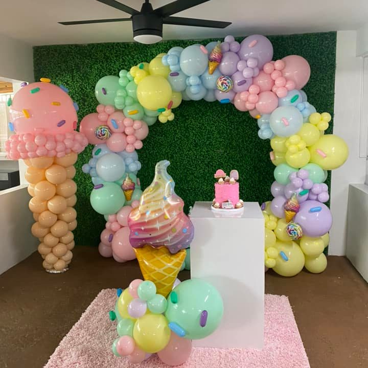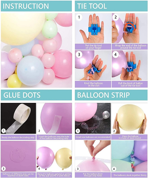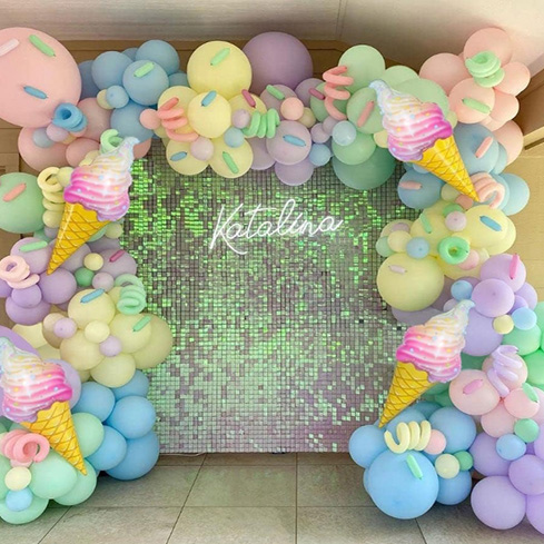 Το παγωτό παγωτό Macaroon Arch Garland Kit περιέχει μπαλόνια από λατέξ από διάφορα χρώματα και μεγέθη, σκόνη μακάκι, μπλε μακάκι, κίτρινο μακάκι, πράσινο maca και πορφυρό maca, καθώς και μακρά μπαλόνια διαφόρων χρωμάτων Maca και μπαλόνια παγωτού αλουμινίου. Αφού φουσκώνονται αυτά τα μπαλόνια, συναρμολογούνται μέσω αλυσίδων μπαλονιών, σημείων κόλλας και κορδέλων για να ολοκληρώσουν ένα όμορφο παγωτό μπαλόνι παγωτού Macaroon. Το πολύχρωμο μπαλόνι Macaroon Arch Garland μπορεί να σχεδιαστεί ειδικά για το πάρτι ή την εκδήλωσή σας. Είναι μια τέλεια επιλογή για υπαίθρια πάρτι, σχολικά πάρτι, εταιρικά ή οικογενειακά πάρτι, γιορτές αποφοίτησης, διακοσμήσεις διακοπών και υπαίθρια παιχνίδια, ειδικά κατάλληλα για τα γενέθλια των παιδιών, τα πάρτι μωρών, τις αποκαλύψεις των φύλων, τα μονόκερα, τα ουράνια τόξα, τις γοργόνες, τα παγωτά κορίτσια ή τα διακοσμητικά για γάμους, τα νυφικά ντους. Δημιουργήστε ένα θέμα μπαλονιού ουράνιου τόξου για το πάρτι σας ή για οποιοδήποτε θεματικό γεγονός.