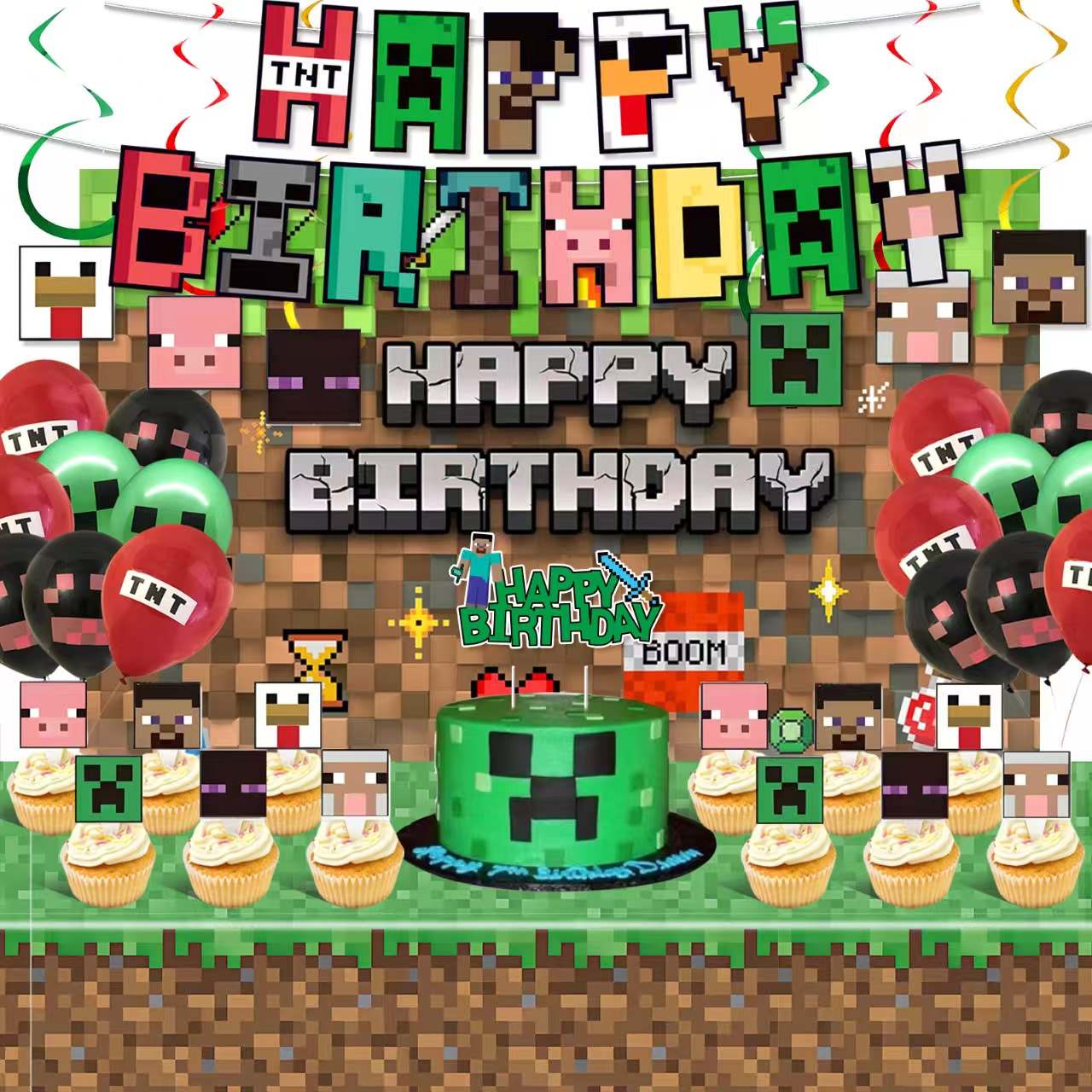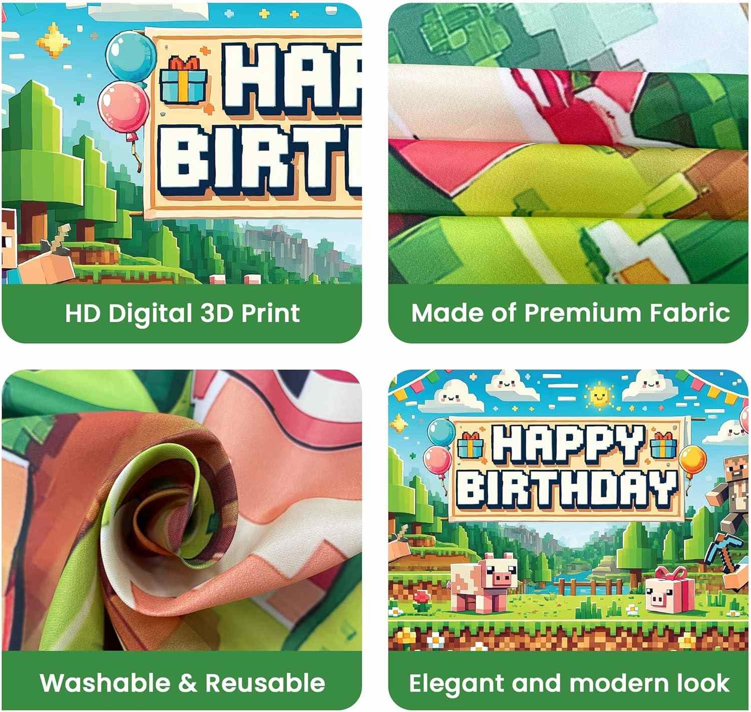 Το σκηνικό Minecraft είναι το κύριο οπτικό μέρος της σκηνής του κόμματος. Ο σχεδιασμός παίρνει ιδέες από κλασικά κομμάτια παιχνιδιών. Δείχνει το Pixel Sky, το Grass, τα δέντρα, τα κτίρια και τον Steve. Αυτά τα μέρη συμμετέχουν για να κάνουν μια πλήρη μπλοκ παγκόσμια σκηνή. Η εικόνα έχει φωτεινό χρώμα. Η εικόνα έχει πλούσια στρώματα. Οι λέξεις Happy Birthday σε στυλ pixel φαίνονται καθαρά. Οι λέξεις παίρνουν το μάτι. Το σκηνικό κάνει το πάρτι να αισθάνεται σαν γη παιχνίδι ταυτόχρονα.