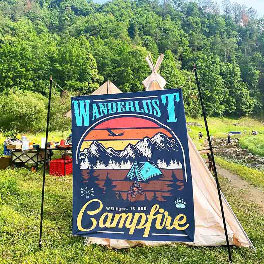 Όταν κάμπινγκ, μπορεί να κρεμαστεί μπροστά σε μια σκηνή ή κάτω από ένα θόλο, που χρησιμεύει ως σκηνικό για συγκεντρώσεις και παιχνίδια. Το υλικό αντιστέκεται στη δροσιά και την υγρασία από το γρασίδι και όταν διπλωθεί, είναι μόνο το μέγεθος ενός φύλλου χαρτιού A4, καθιστώντας το ελαφρύ και εύκολο στη μεταφορά. Για τις πολιτιστικές και δημιουργικές αγορές του Σαββατοκύριακου, τα κοινοτικά εργαστήρια βιοτεχνίας και άλλες δραστηριότητες, το σκηνικό του κόμματος μπορεί να προσαρμοστεί με θέματα αγοράς και προγράμματα εκδηλώσεων. Κατασκευασμένο από 100D πολυεστέρα, είναι ανθεκτικό στον ήλιο και δεν θα εξασθενίσει ακόμη και σε άμεσο ηλιακό φως.