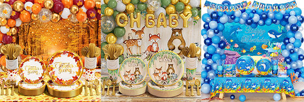 Τα μέρη είναι μια πρωταρχική χρήση για τα επιτραπέζια λογισμικά χαρτιού Niun®. Η σύζευξη με ένα σύνολο θεματικών γιρλάντες μπαλονιών μπορεί να ενισχύσει το θέμα. Κάθε Garland Balloon έχει ένα αντίστοιχο θέμα και προσφέρει μια ποικιλία χρωμάτων για να συντονιστεί απόλυτα με διαφορετικά σύνολα επιτραπέζιων λογισμικών χαρτιού. Τα επιτραπέζια σκεύη χαρτιού με τα αντίστοιχα θεματικά στυλ Garland Balloon θα δημιουργήσουν ένα εκθαμβωτικό πάρτι!