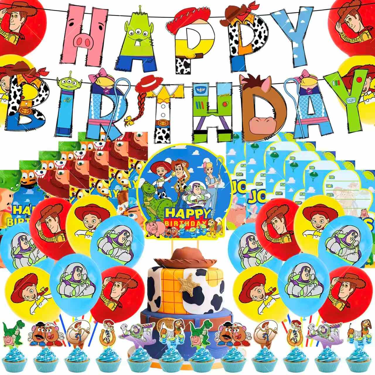 Ο σχεδιασμός δείχνει κλασικούς χαρακτήρες ιστορίας παιχνιδιών. Το Buzz Lightyear έχει στοιχεία χώρου. Ο Γούντι έχει στυλ καουμπόη. Η Jessie έχει μια ενεργή εμφάνιση. Όλα αυτά γίνονται με ζωντανό τρόπο. Τα μπαλόνια έχουν σχήματα αστέρων, στρογγυλά σχήματα και σχήματα χαρακτήρων. Ένα μόνο μπαλόνι μπορεί να είναι ένα highlight. Ένα σύνολο διαφορετικών μπαλονιών αλουμινίου ιστορίας παιχνιδιών μπορεί να προσθέσει περισσότερες λεπτομέρειες και περισσότερα στρώματα. Μπορούν να ανάψουν ταυτόχρονα το θέμα της ιστορίας παιχνιδιών.